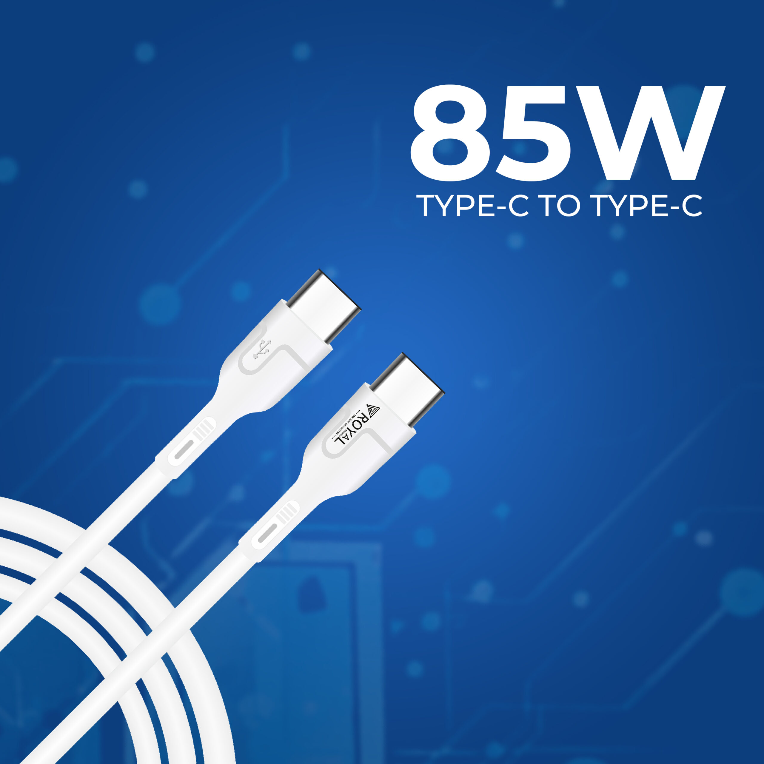Experience next-level charging with the Royal Mobisol 85W Type-C to Type-C Fast Charging Cable, engineered for powerful performance and long-lasting durability. Designed with 5-core internal wiring, tinned copper conductors, shielding layer, metal braided mesh, and durable PVC coating, this cable ensures safe, stable, and efficient power delivery.