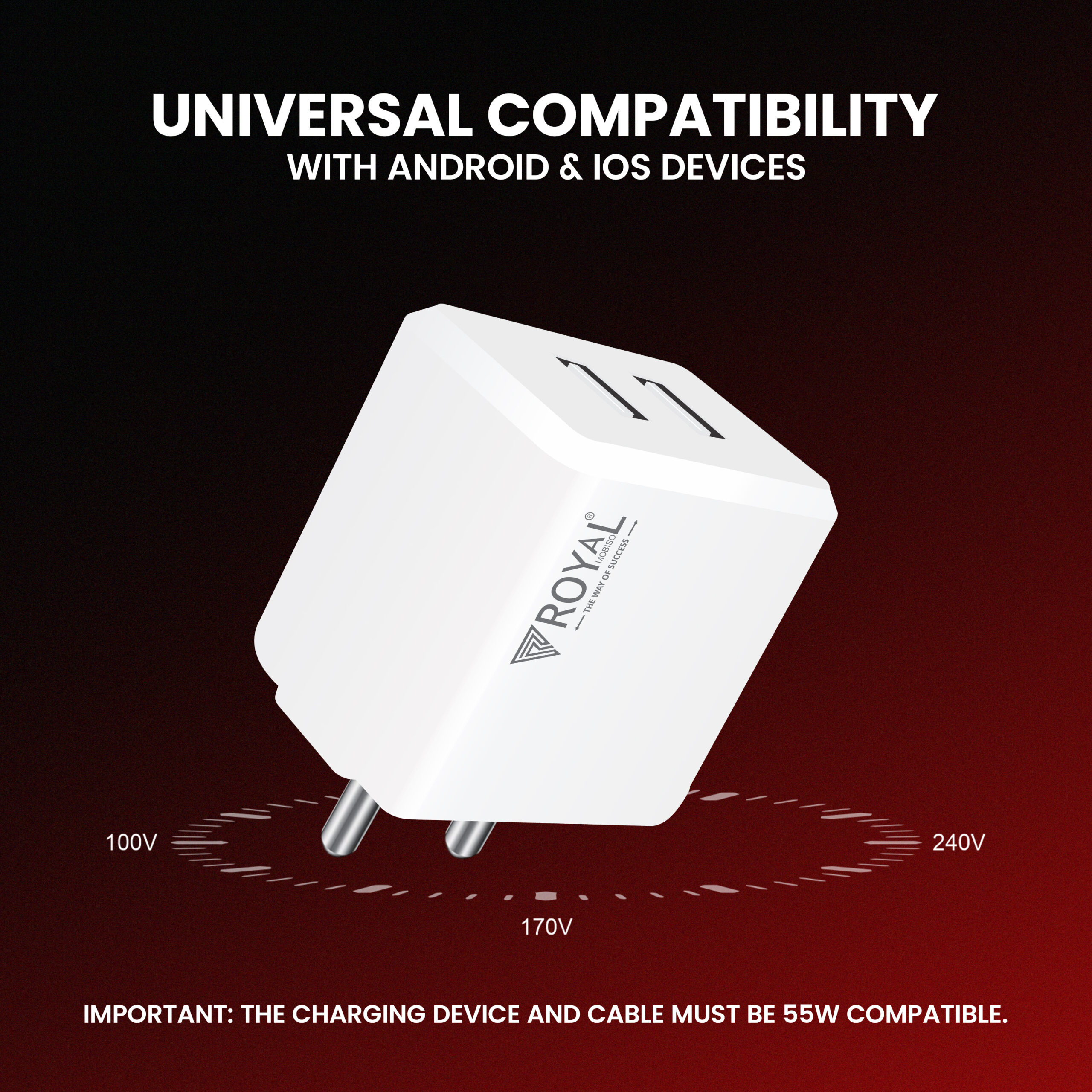 Power up your devices faster and smarter with the Royal Mobisol 55W Super Fast Dual USB Charger. Designed for modern lifestyles, this high-performance charging adapter delivers rapid charging speeds while allowing you to charge two devices at the same time.